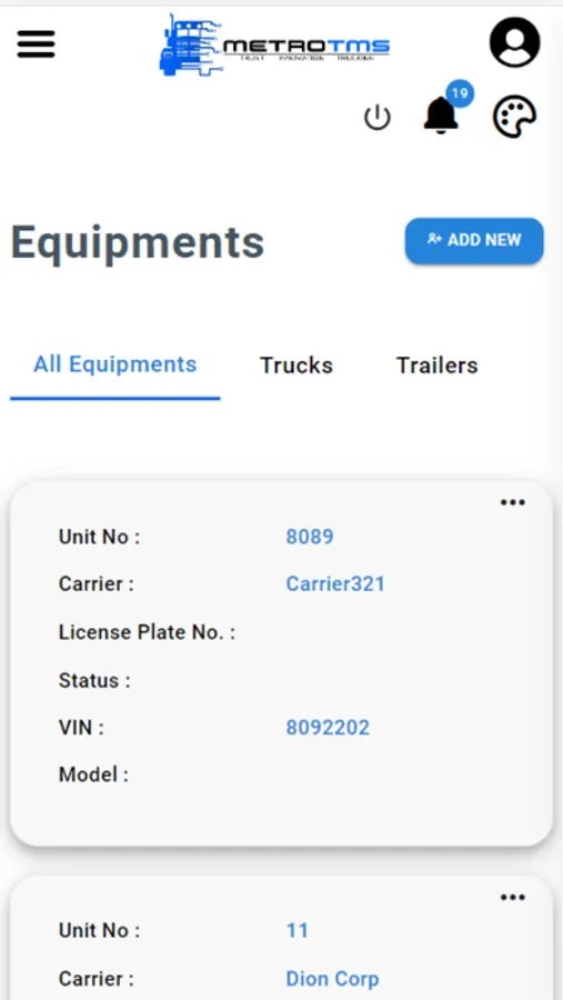 Smart Equipment Management: MetroTMS facilitates smart equipment management, where you can track the status, and details of your equipment (truck and trailers). Now, it's to much easy to allocate - deallocate the drivers to equipment.