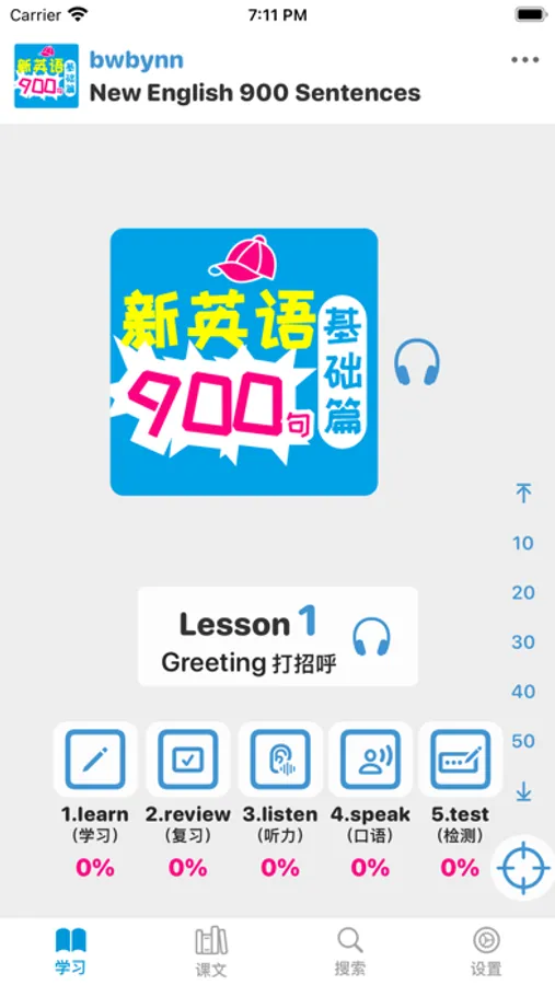 课程分为 学习、复习、听力、口语、检测 5个步骤,让你学了忘不了。