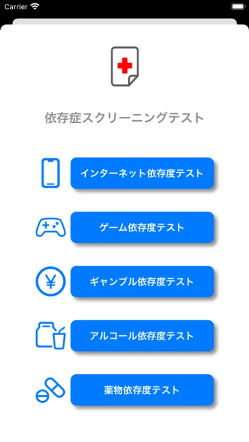依存症の代表例【インターネット・ゲーム・ギャンブル・アルコール・薬物】についてのスクリーニングテストです。