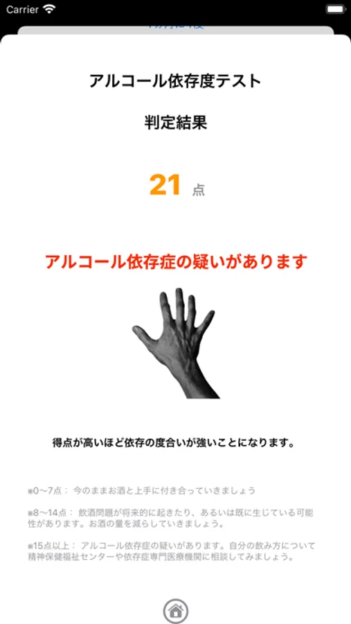 (注)このセルフチェックアプリはあくまでも簡易的に依存症のリスクを判定するものであり、正式な診断は医療機関の受診が必要です。