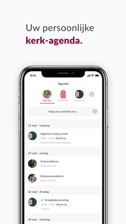 View the calendar for your entire community, but also for specific groups. Thanks to the smart group structure, each user has his own unique church calendar. Then link it to your own personal calendar and don't miss a thing!