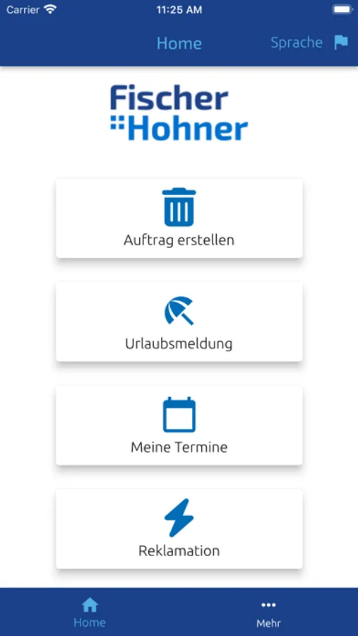 Die App bietet Ihnen als Fischer + Hohner-Kunde maximale Flexibilität und Kontrolle bei Ihren vertraglich vereinbarten Dienstleistungen. Sie erhalten sofortigen Zugriff zu den Details Ihres Auftrages. Sie können uns über diese App jederzeit Ihren Entsorgungsbedarf mitteilen. Daneben dient die App als Kommunikationstool, um Sie in Ausnahmefällen bei einer eventuellen Verzögerung oder einem Ausfall unserer Dienstleistung schnell durch Push- Nachrichten auf Ihr Smartphone zu informieren.