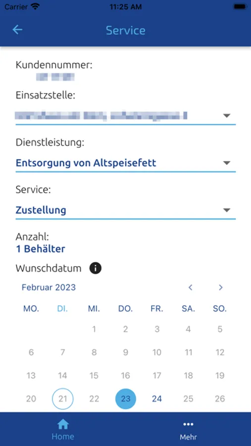 • Möglichkeit, jederzeit Ihren Entsorgungsbedarf über die App mitzuteilen bspw. den Zeitraum Ihrer Betriebsferien festlegen und mitzuteilen, in dem keine Leerung erfolgen soll