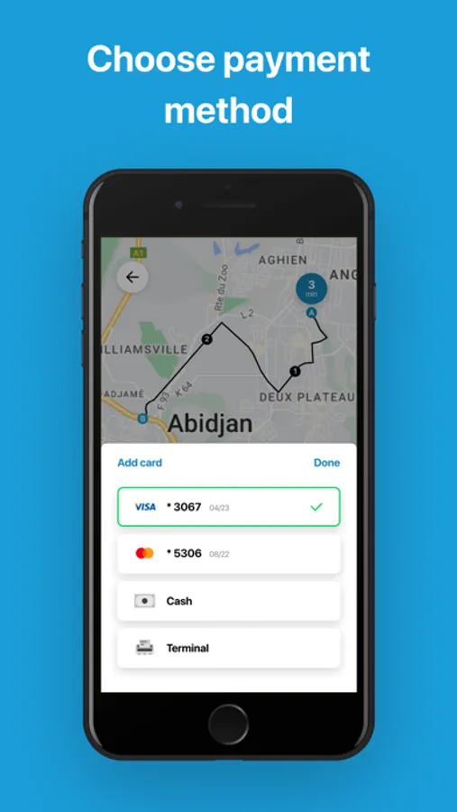 Order a ride in Cameroon, Kenya, Ivory Coast, Senegal, Nigeria, Ghana from almost anywhere.