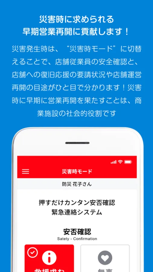▶災害時には、早期に営業再開を図り、近隣のお客さまのニーズに応えることこそ、商業施設には求められます。早期に営業再開する為には、店舗ごとの被災状況をいかにスピーディーに把握するかにかかっております。