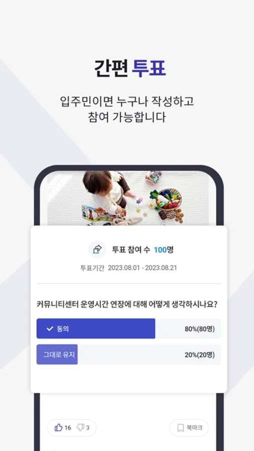 입주민이 만드는 찬반 투표 기능 제공