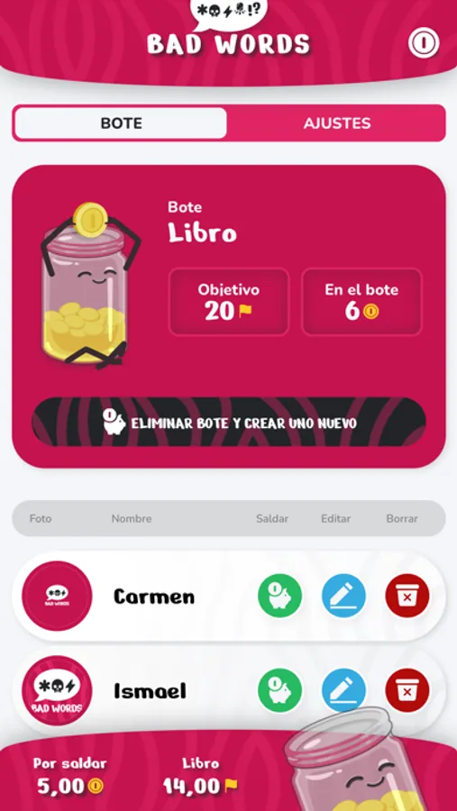 Aplicación para gestionar un bote virtual de palabras prohibidas.