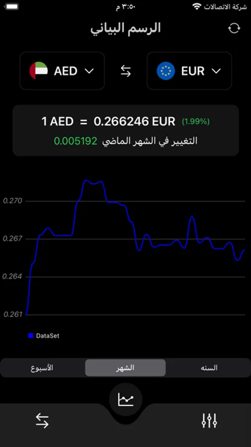 بالإضافة إلى إمكانية معرفة أسعار التحويل في الفترة الماضية ( حتى مدة ٣٦٥ يوم ).