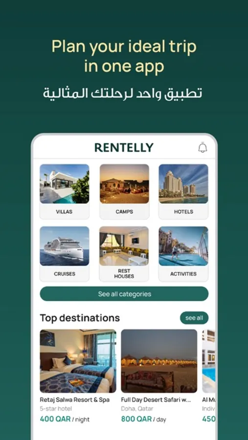 With hundreds of options, Rentelly is the most trusted platform for all your online rental Doha bookings, a one-stop shop to rent villas and camping in Qatar.