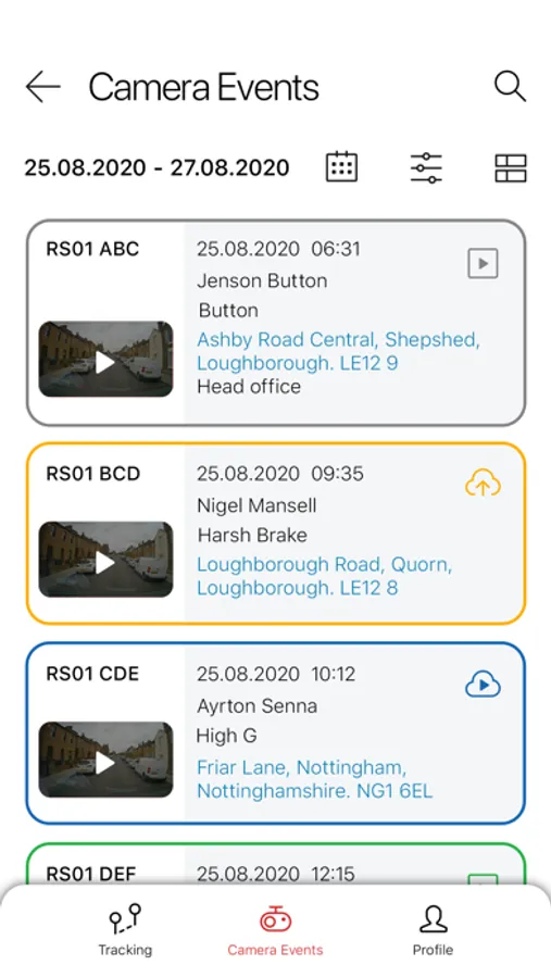 • Group Selection: Choose to view all or one vehicle from a specific group;