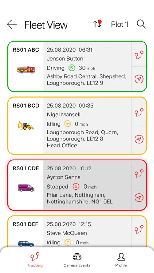 • Point of Interest: Vehicles at a POI will also display the POI name alongside the address;