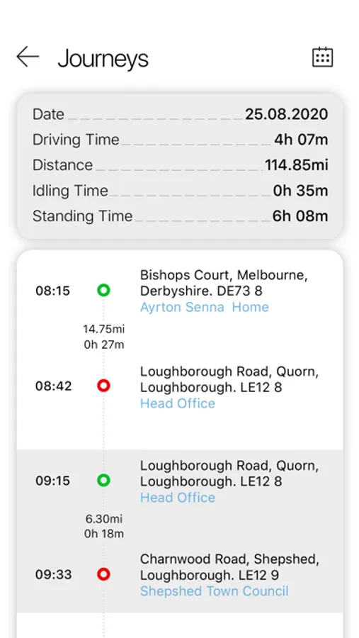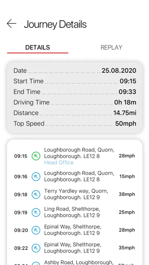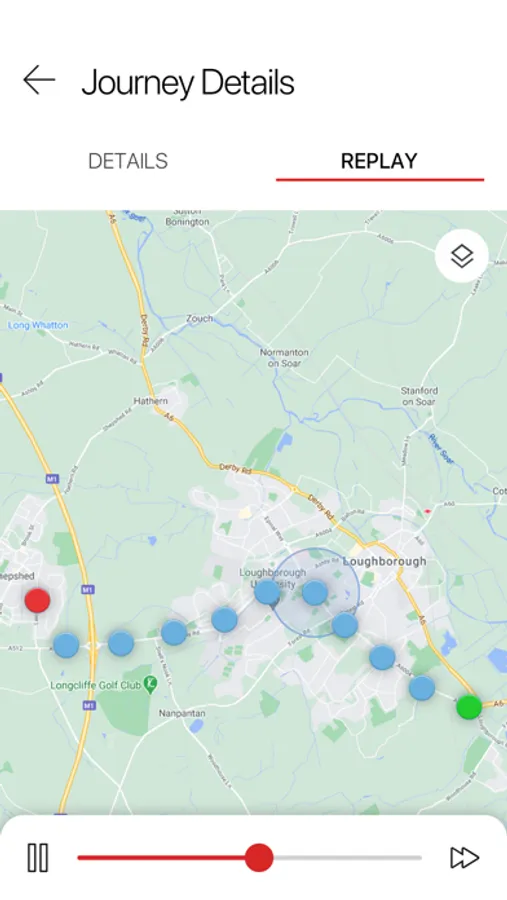 • Journey Replay: Replay the journey plotted on the map (Snail Trail); and