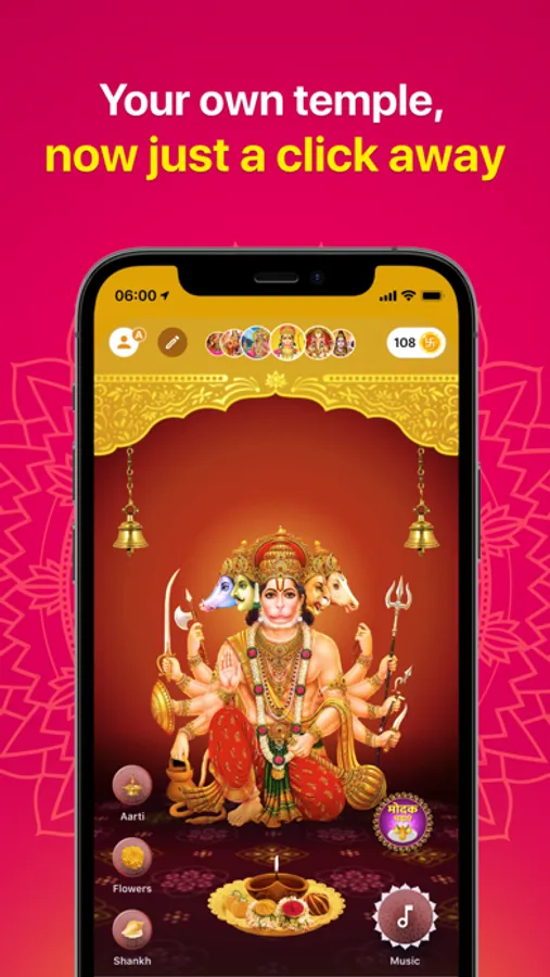 2. Perform daily rituals on phone - light diya, offer flowers, blow conch shells, and ring bells