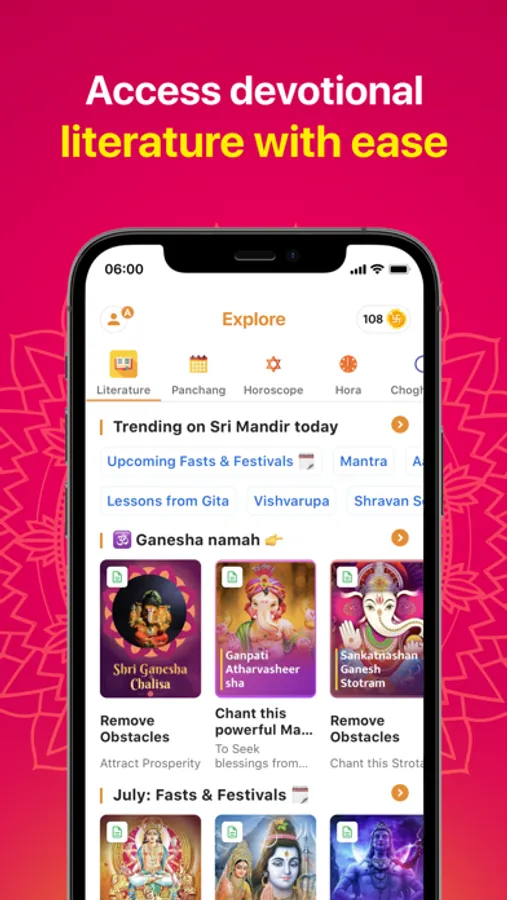 5. Get accurate Hindu Panchang to know auspicious time of the day, dates, Information on sunset, sunrise, moonset and moonrise along with information on upcoming festivals and muhurths. Know the best time to start any work and the time to avoid bad luck.