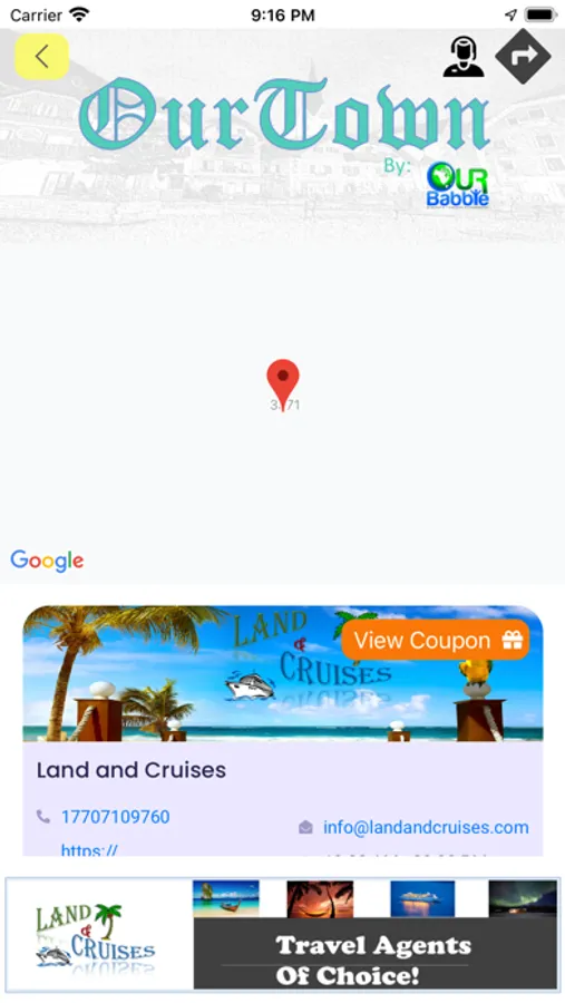 OurTown is a small business listing app that provides users the ability to locate and view directions. It also allows users to view the listing of the small business that allow for the contacts, hours of operation and websites as well as any coupons listed by the small business owners.