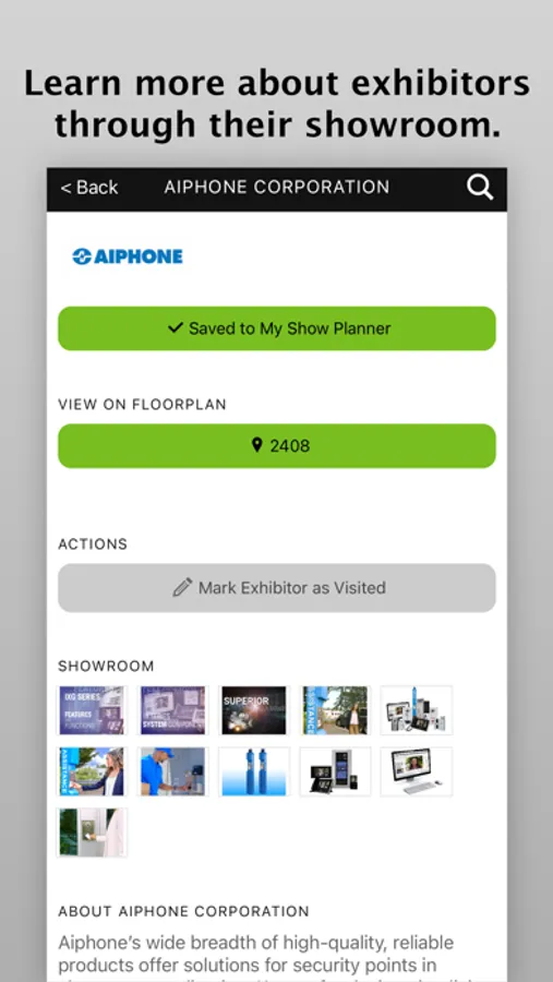 • Exhibitor Information: Access a comprehensive list of exhibitors and their contact information, including website links, phone numbers, and booth locations on the exhibit hall map.