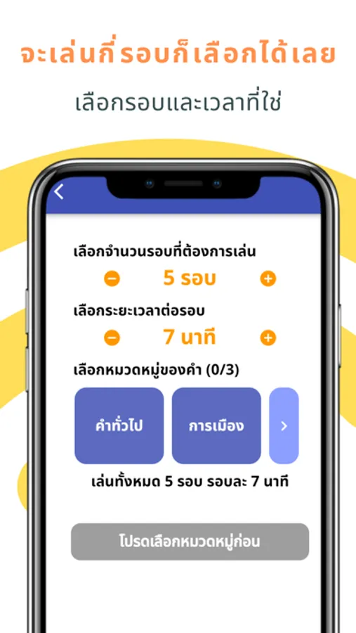 เพียงเลือกหมวดคำที่จะเล่น เลือกจำนวนรอบและเวลาต่อรอบ จากนั้นก็กดเริ่มเกม พยายามงัดทุกกลยุทธ์ให้เพื่อนพูดคำต้องห้ามออกมา รับคะแนนและชนะไปเลย