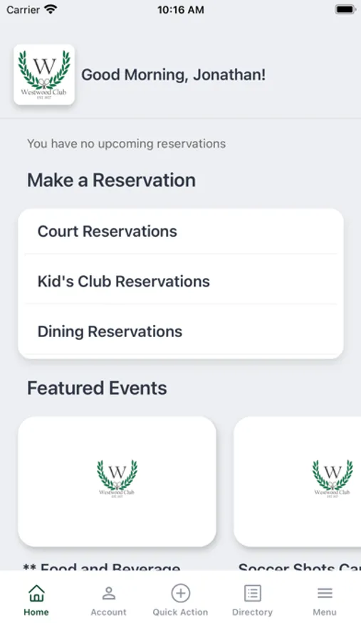 Mobile App for use by members of Westwood Club in Richmond, VA. Westwood Club members may use the app to view and pay statements, book courts, sign-up for fitness classes, make dining reservations, register for events, access membership directory and more. Requires an active membership with Westwood Club to activate and access.