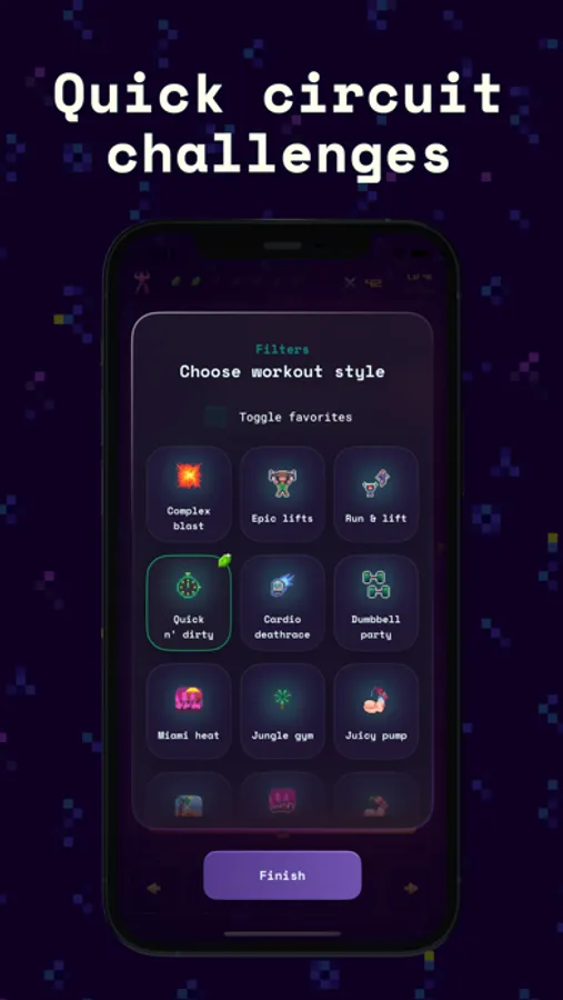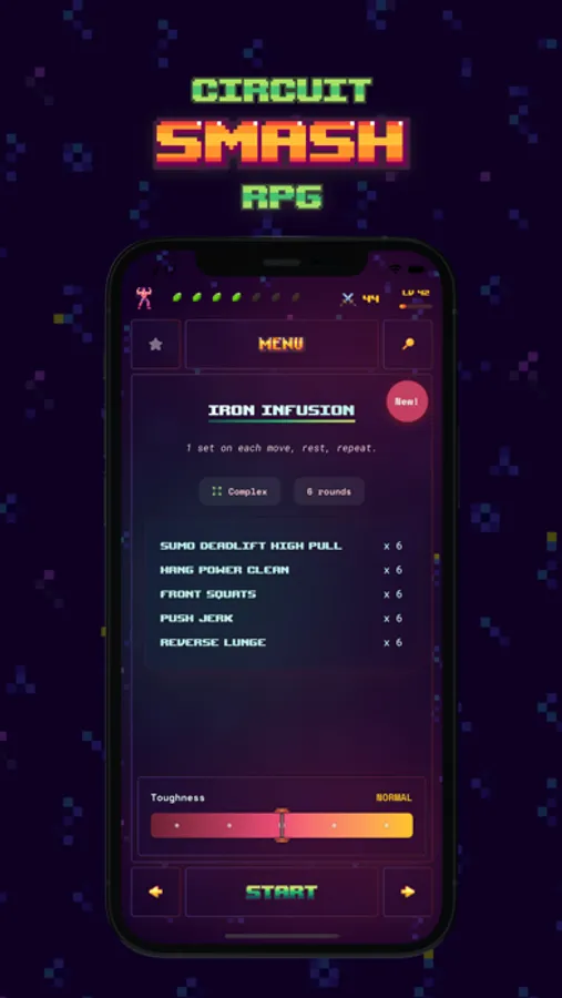 Burn calories and build strength in record time with Circuit Smash RPG! Our fun and challenging workouts are designed to push you to the next level and keep you motivated with a built-in gaming system. Plus, with workouts that are short and extremely varied, you'll never get bored. Get ready to ignite your fitness game with Circuit Smash RPG!