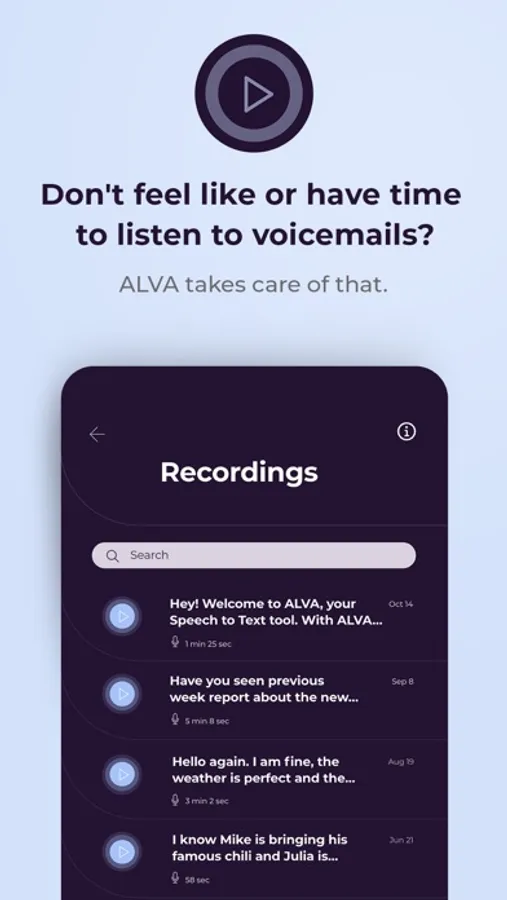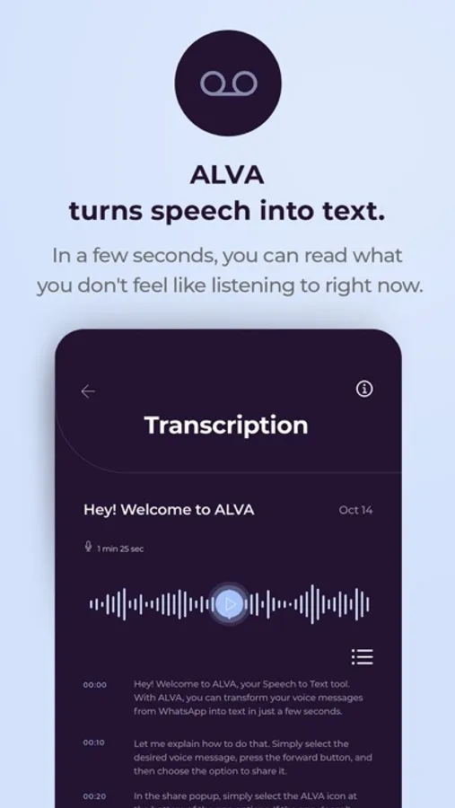 Be more efficient and focus on what matters with ALVA - your voice message companion.
