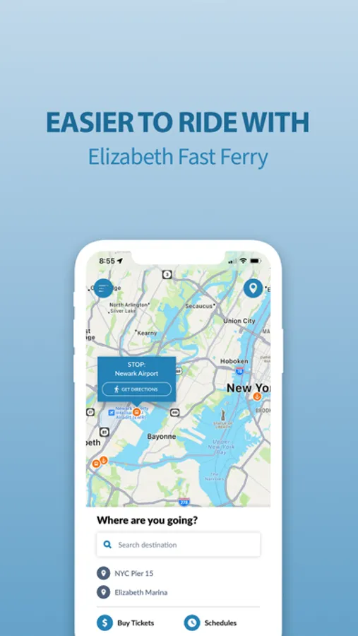 The Elizabeth Fast Ferry will operate every day with service between the City Marina in Elizabeth, NJ, and lower Manhattan. The trip takes under 30 minutes.