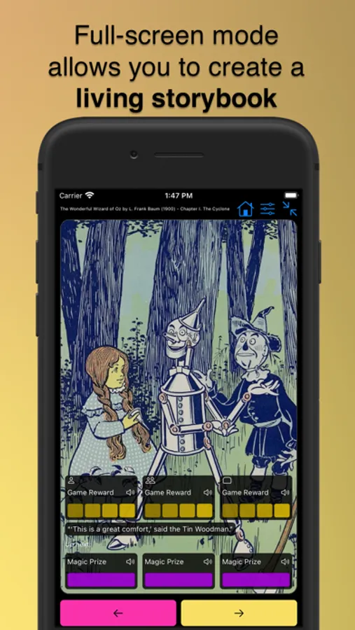 STORYBOOK/FULL-SCREEN MODE: Make your presentations come to life with Dramatic's ability to add images to your scenes, creating a living storybook. Or, use full-screen mode for screen-mirroring your scripts with a variety of visual customizations and control modes to fit most use cases.
