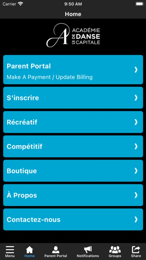 L'application ADC app allows you to manage your account with ease, register for classes, parties, and special events. You'll also receive important notifications about class changes, closings, registration openings, special announcements, and upcoming events.