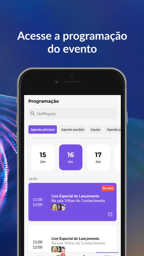 Com o aplicativo DDB 2022, você tem acesso a uma rede social exclusiva, pode fazer novos contatos, enviar perguntas aos palestrantes, trocar mensagens com outros participantes, enfim, interagir com a comunidade. Além disso, você pode consultar a programação, avaliar conteúdos, dar feedback e responder quizzes. Utilize o APP e aproveite ao máximo os recursos.