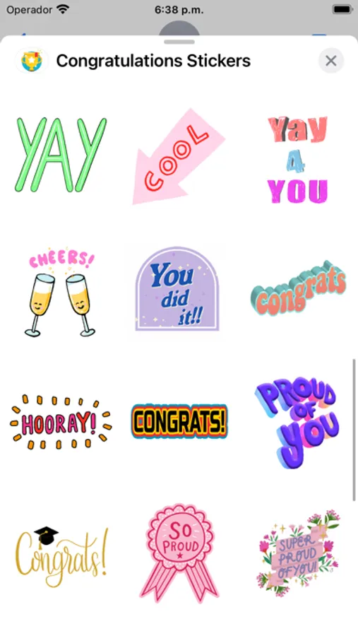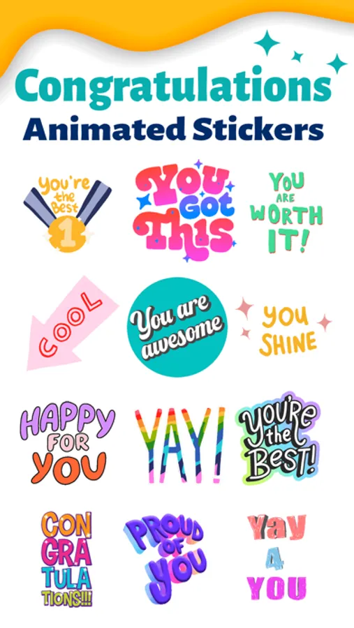 There is a wide variety of Congratulations Stickers you can choose from this app. Peel and stick them over other conversation bubbles, images, photos, even on other stickers.