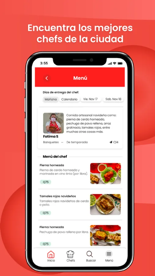 Pide antes de las 7 PM y recibe al día siguiente para darle tiempo al chef de comprar ingredientes frescos y preparar tu comida de forma artesanal, con amor y atención al detalle.