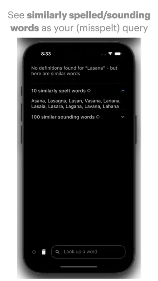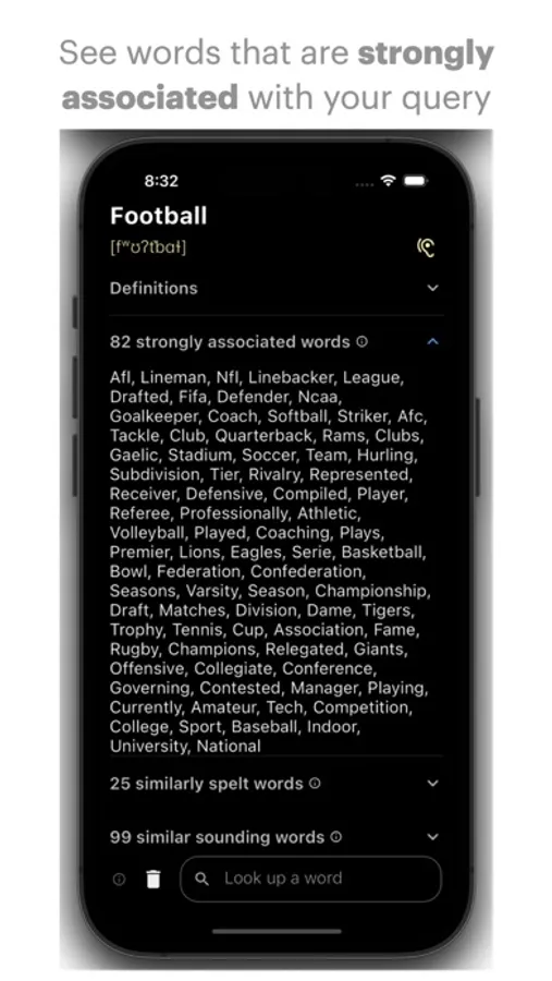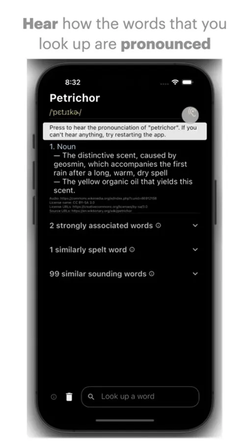 WordDefiner is a powerful yet thoughtfully designed online English dictionary and thesaurus app for iOS, iPadOS and macOS. Learn the phonetic transcription, pronunciation audio, and meanings, including synonyms and antonyms, based on the part of speech for words that you look up with WordDefiner! Not just that, but you can also see strongly associated, similarly spelled, similar sounding, and rhyming words according to your query - even if the definition of your query can't be found! When it comes to the app's design, the dark, minimalistic design language isn't all that's easy on the eyes: WordDefiner lacks unnecessary account creation, distracting banners/ads, and bloated trackers. Learn new words and study old ones ad and worry-free with the WordDefiner English Dictionary!