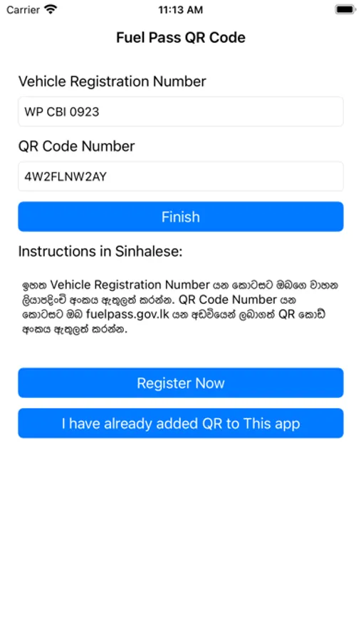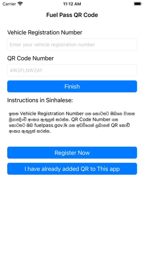 Using this app you can easily save your QR Code and use it. You only need to input your QR Code Number and Vehicle Number. All data will be saved locally only. No third party can access or see your details. I made this app only for allow you to easily access your QR Code.