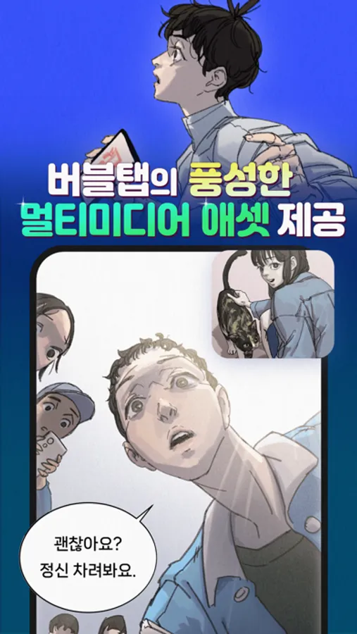 - Tap하면 펼쳐지는 캐릭터의 대사, 생동감 있는 일러스트, 작품 배경을 버블탭에서 경험해보세요!