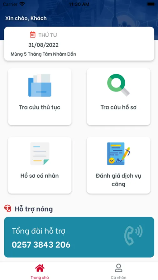 Ứng dụng cung cấp các chức năng tra cứu, đánh giá hồ sơ, thủ tục dịch vụ công.