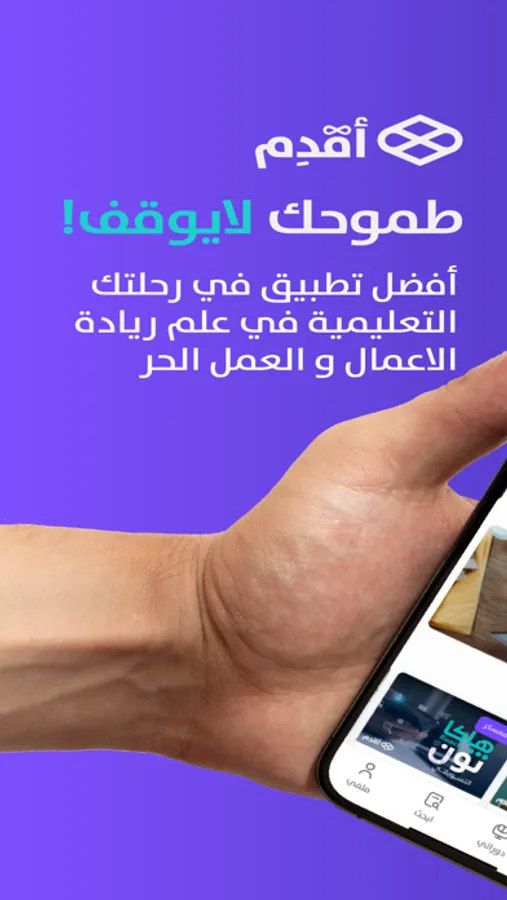 An interactive educational application specialized in the field of entrepreneurship that develops entrepreneurs and provides them with the skills necessary for the success of their projects through workshops, training courses and specialized camps.