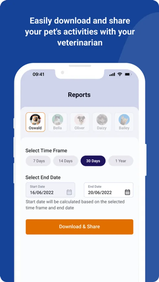 - Easily share your pet’s Logbook Report with your veterinarian between visits. This Report can be downloaded and shared via email.