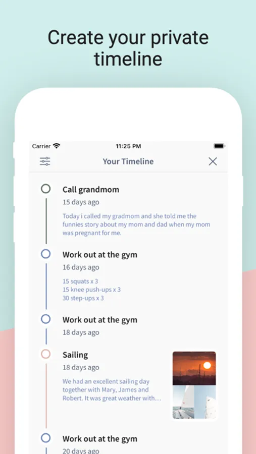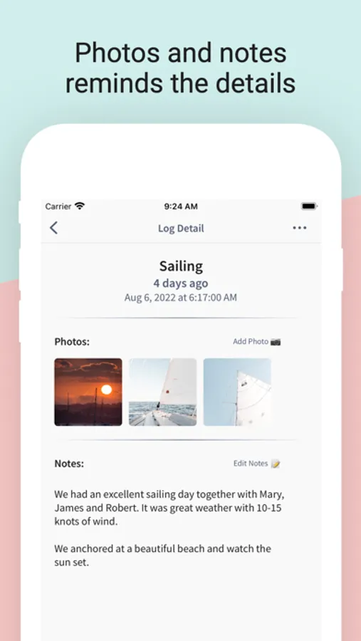 2- Detailed Event Logging: Keep a personalized list of events you wish to track and easily enter logs to capture the specifics. Enhance your memories by adding photos and descriptive notes, reliving each experience in vivid detail.
