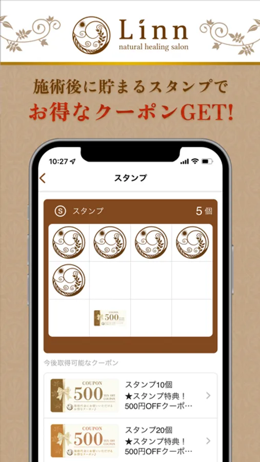 ご来店スタンプを貯めることで、お得な限定クーポンが発行・ご利用いただけます。