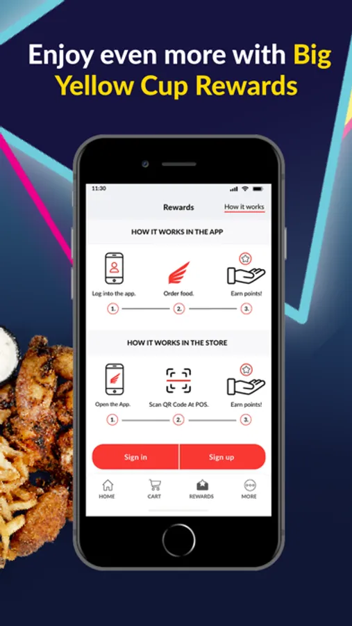 LOYALTY PROGRAM: Big Yellow Cup Club Rewards. Earn 10 points for every dollar you spend. Eat. Earn. Rewards.