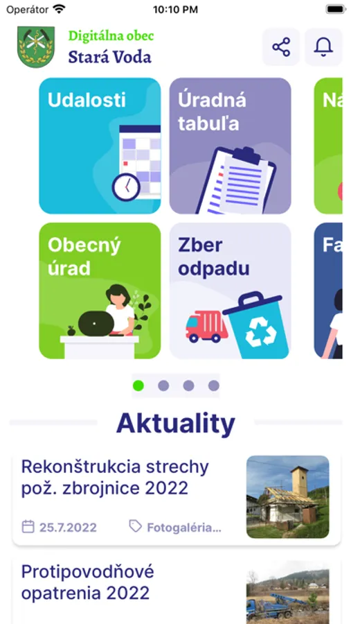 Na jednom mieste aktuality, udalosti, informácie z obecného úradu, počasie, kalendár zberu odpadu, farské oznamy, história, fotogaléria, užitočné návody, zasielanie dôležitých notifikácií a všetky ostatné informácie pre občana.
