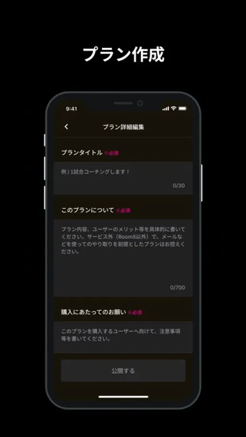 プラン作成からルームへの参加、レビューの確認や売上の確認など、