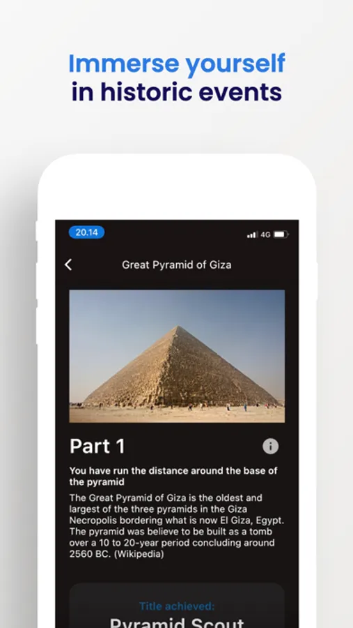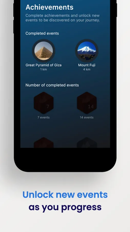With Run Journey, your workouts start a journey across spectacular historical and geographical events. As you run, you progress through events that are discovered when you reach their distance. As you uncover events, you can immerse yourself in their history and complete achievements to unlock new events.