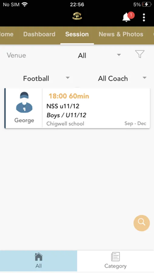 Our own branded app to facilitate booking on to our coaching programmes for 4 year olds to Adults of all levels - Schools, Club and Holiday programmes