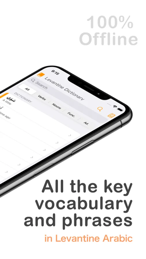 Learn Levantine Arabic is a Dictionary + Phrasebook that gives gives you all the essential vocabulary and phrases in spoken Levantine Arabic. The app uses a standardised form of Levantine Arabic that is widely understood across the Levant - in Syria, Lebanon, Palestine, and Jordan. Also the dictionary and phrasebook both work totally offline so you can use them freely on your travels.