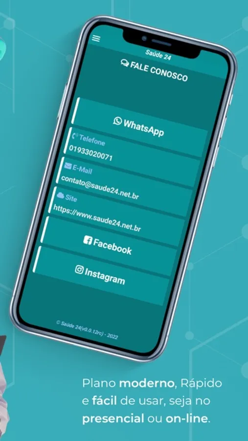 Com o aplicativo Saúde 24 os nossos clientes têm acesso ao guia médico com todas as especialidades presenciais e exames disponíveis em sua cidade e também realiza consultas online de forma rápida e prática.