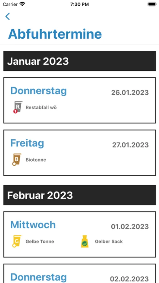 Welcher Wertstoff kann wann, wo und wie entsorgt werden? Die abfallapp ermöglicht den schnellen Zugriff auf die individuellen Abfuhrtermine. Sie werden an alle Termine für maximal fünf Standorte nach vorheriger Einstellung erinnert. Im Profil werden die persönliche Standorte ausgewählt. Über einen Schieberegler wird eingestellt, über welche Abfuhrtermine eines bestimmten Wertstoffes informiert werden soll.