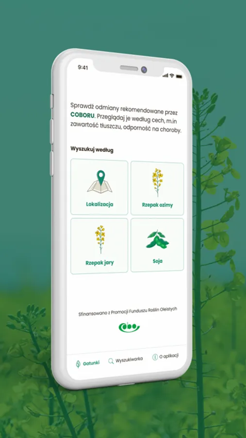 Jeśli jesteś rolnikiem i chcesz osiągać jak najwyższe plony rzepaku lub soi to jest to aplikacja właśnie dla Ciebie. Szybki i łatwy dostęp do sprawdzonych odmian rzepaku ozimego, rzepaku jarego oraz soi dzięki przeniesieniu na Twojego smartfona bazy wiedzy wynikającej z listy odmian zalecanych przez Centralny Ośrodek Badania Odmian Roślin Uprawnych (COBORU).
