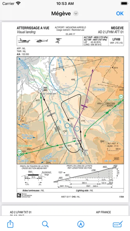 Si l’accès à Internet n’est pas disponible (en altitude par exemple), l’application affiche automatiquement la dernière version téléchargée de la carte.