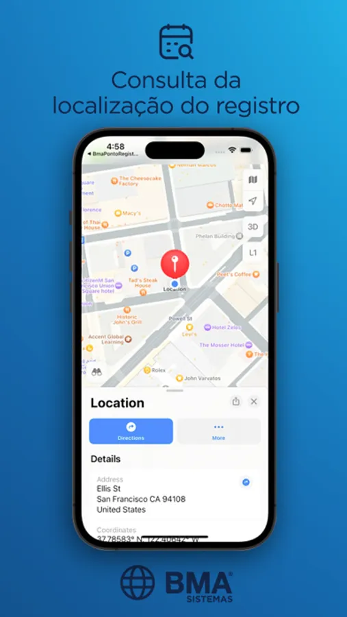 Além de alcançar os colaboradores que desempenham atividades externas, permite obter a geolocalização de cada marcação, facilitando a visualização e a gestão dos registros que são sincronizados automaticamente com o controle do Ponto.