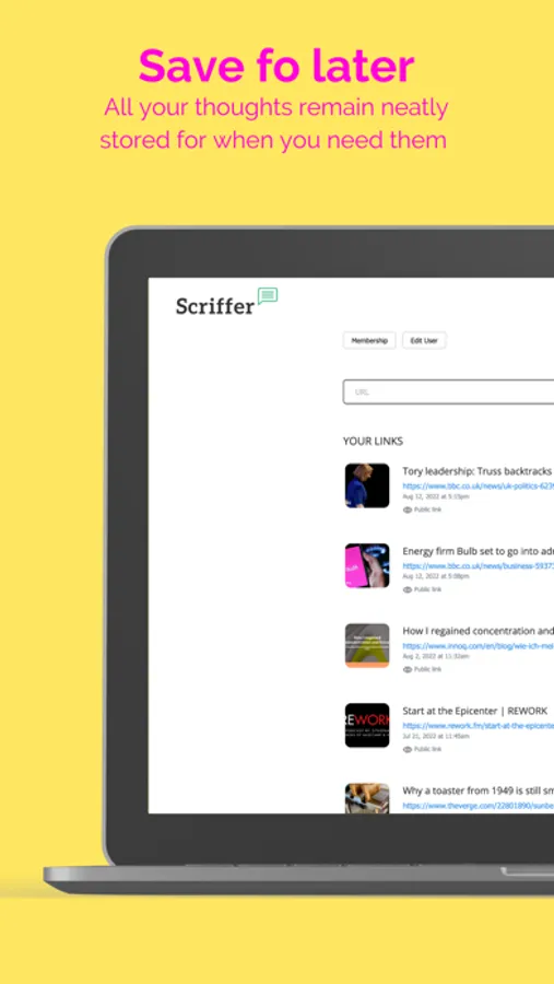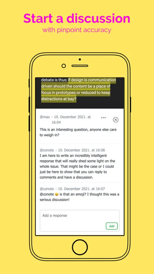 Conote is great for both sharing your ideas with others and also saving your thoughts for later. All your comments are saved to your dashboard so you can quickly remember what you were thinking when you need them.